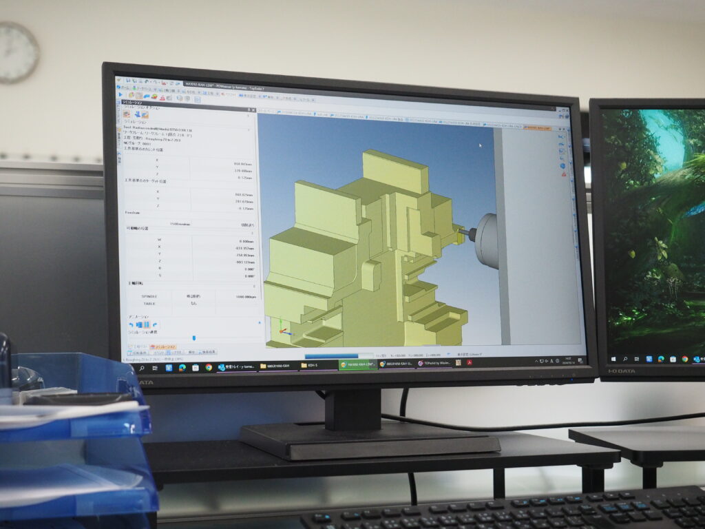 以前使用していたシステムでは、シミュレーション機能はあるものの確認できるのは工具の動きのみでした。TopSolidでは、機械の動作まで考慮したシミュレーションが可能です。これにより、加工前により正確な干渉確認ができ、実際の加工時の確認工数を削減することができました。